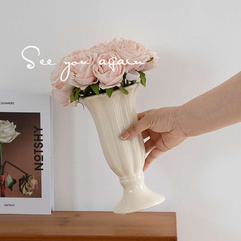 欧式玫瑰插花花瓶白色简约陶瓷花器客厅餐桌干花鲜花水培装饰摆件