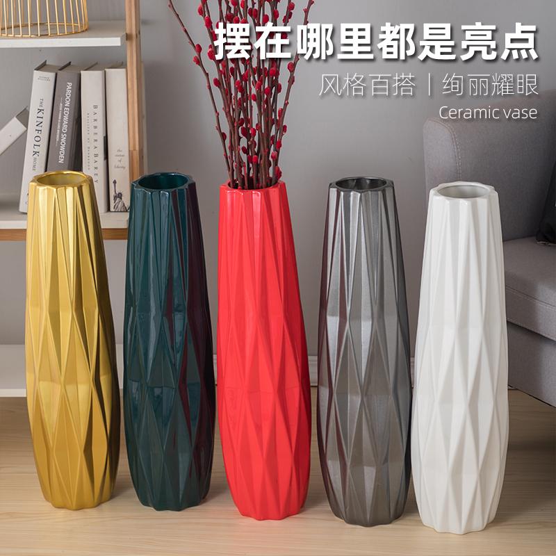 装饰品落地欧式陶瓷花瓶居家大号摆件现代简约富贵竹花瓶干花花瓶