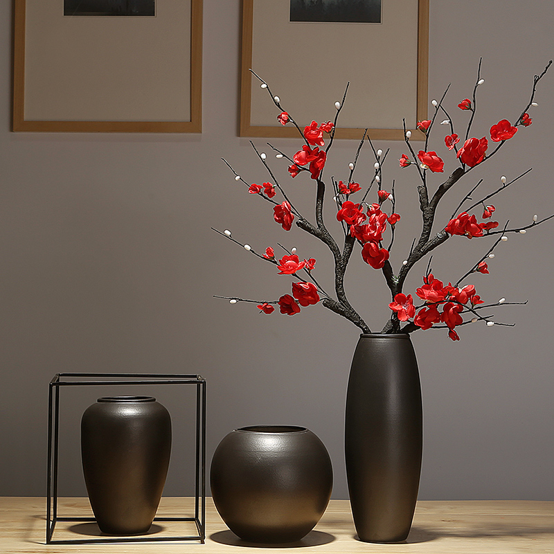 黑色欧式陶瓷花瓶摆件复古简约家居装饰品工艺品迷你干花茶道花器