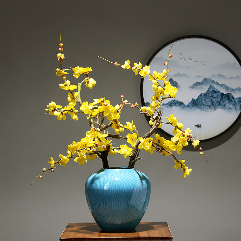 LIVETAI 黄蜡菊永生干花欧式陶瓷花瓶插花器家居软装高级饰品摆件