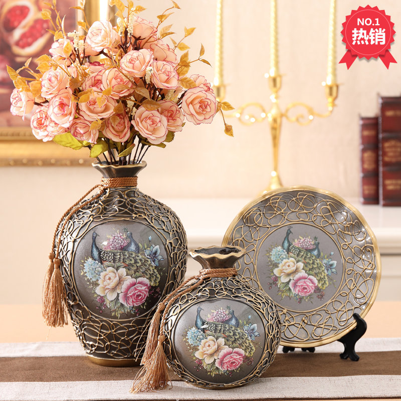 欧式陶瓷花瓶复古酒柜装饰品家居创意三件套插花美式客厅摆件新品