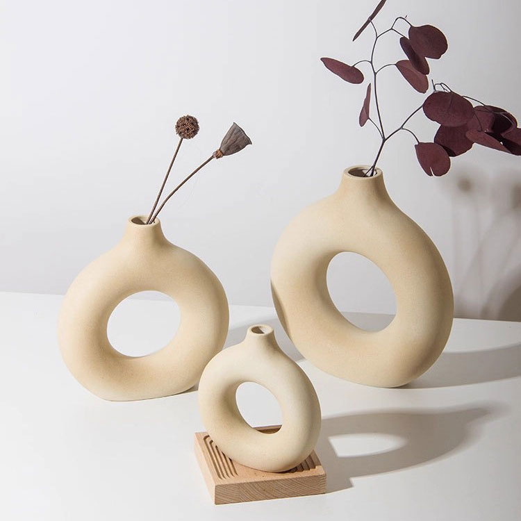 欧式陶瓷花瓶圆圈摆件创意套装客厅简约酒柜高档插花高颜值养绿植