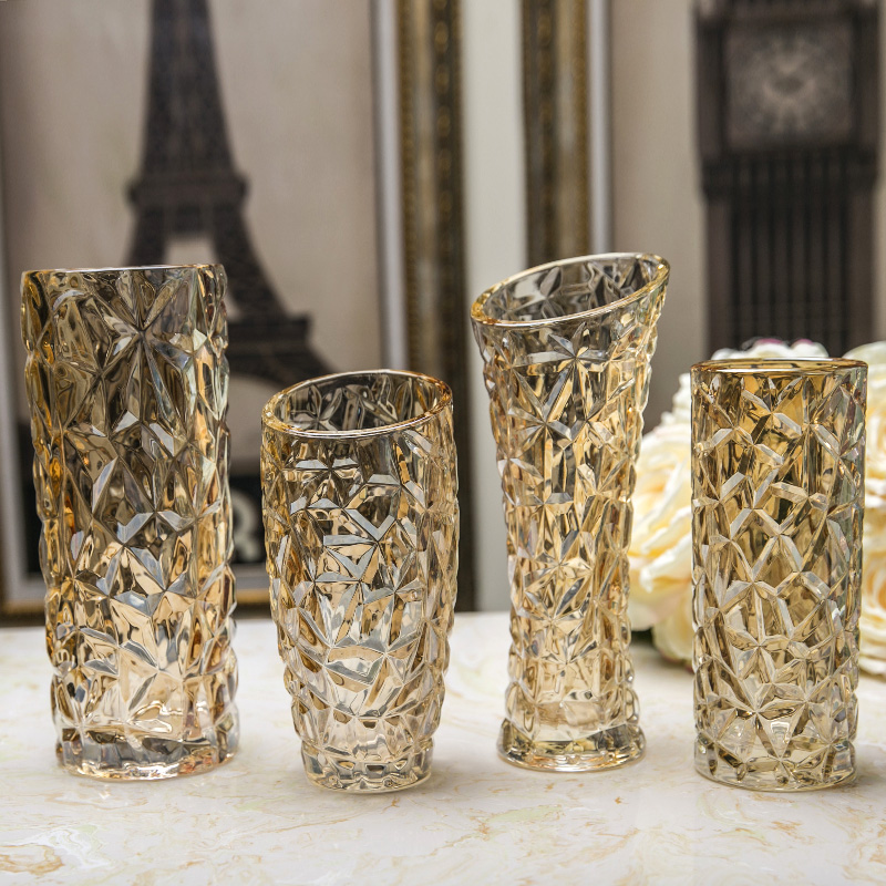 新古典欧式金色水晶玻璃花瓶 创意玻璃花器插花奢华客厅摆件装饰