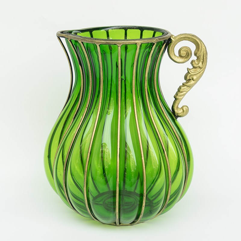 29CM 水壶型玻璃花瓶 创意欧式台面插花水培透明花器 铸铁手柄