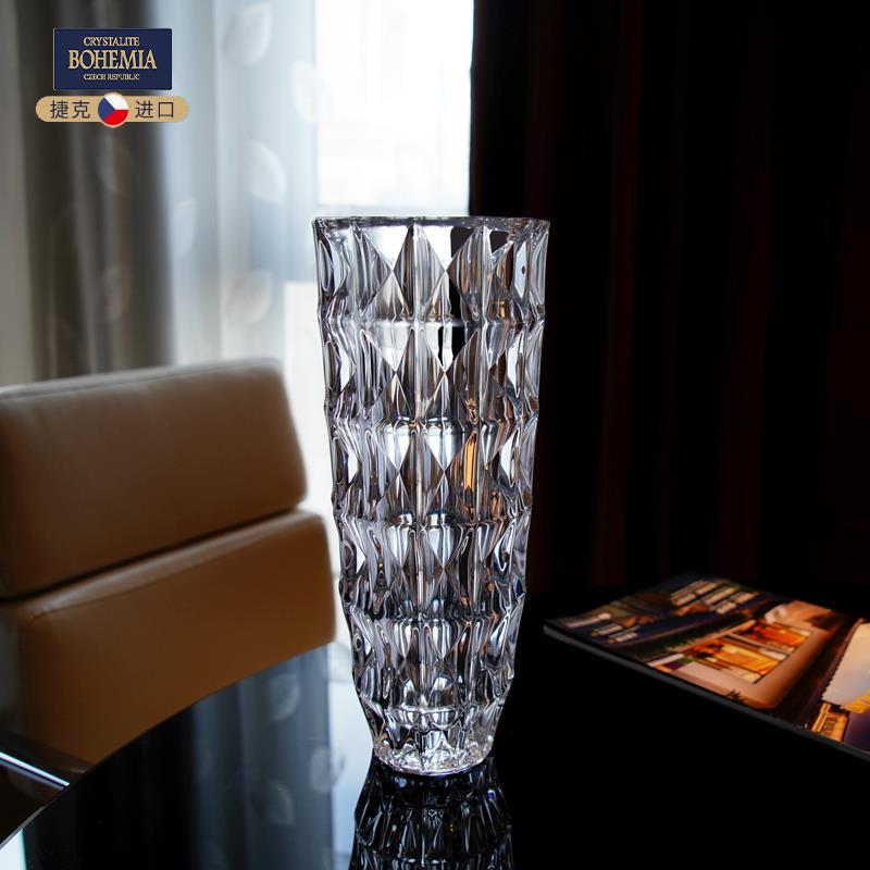 捷克BOHEMIA进口水晶玻璃花瓶 创意钻石纹现代插花台面花瓶摆件