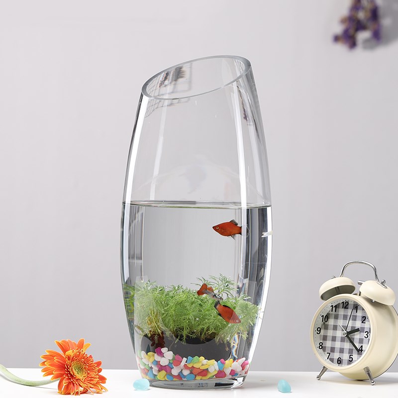 创意透明圆形斜口玻璃花瓶多肉植物花瓶水培花器家居摆件微景观瓶