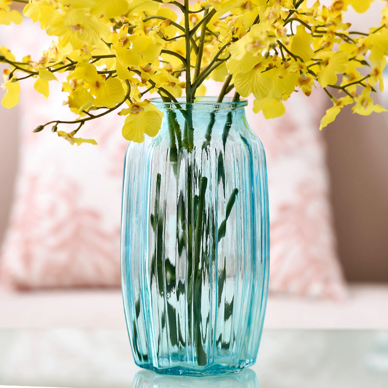 柯林斯 夏季清新条纹彩色玻璃花瓶 创意水培花插简约清新花器摆件