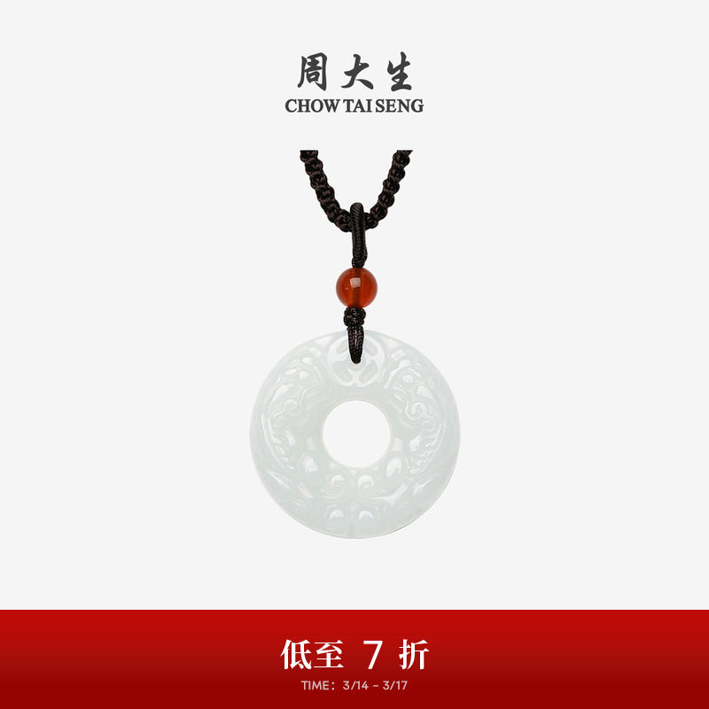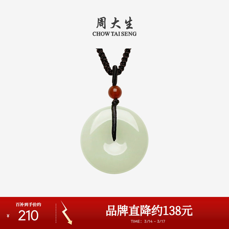 周大生和田玉平安扣吊坠男女情侣款项链挂坠编绳生日礼物送男女友