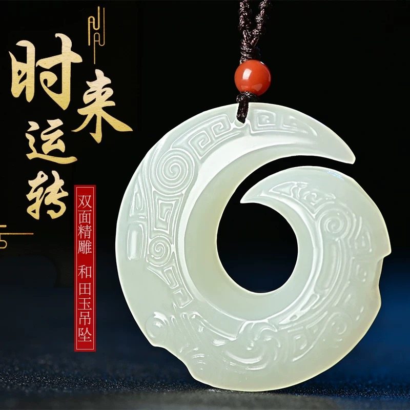 和田玉平安扣吊坠男女双面雕刻时来运转如意乾坤情侣玉佩项链挂件