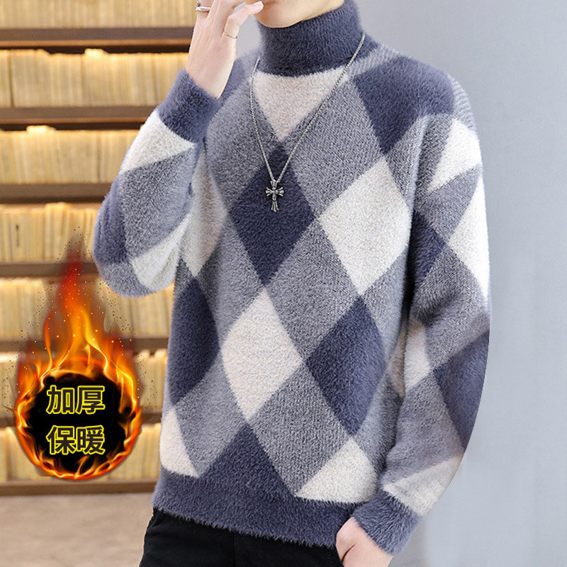 男士水貂绒高领毛衣秋冬季新款韩版潮流绒毛衫宽松加厚针织打底衫