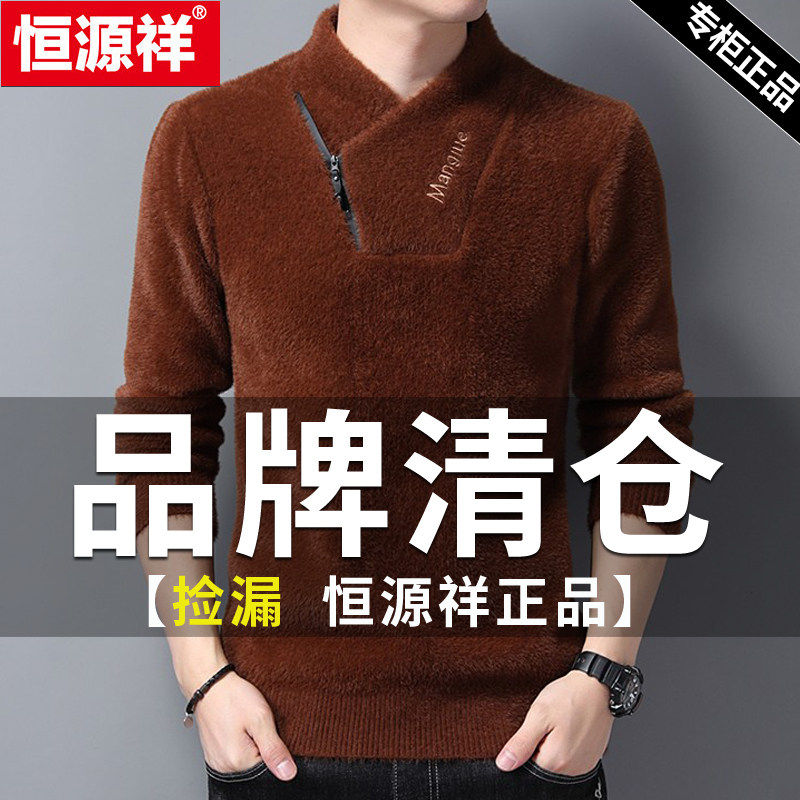 恒源祥冬季V领男士韩版仿貂绒半高领毛衣加厚保暖上衣爸爸装宽松