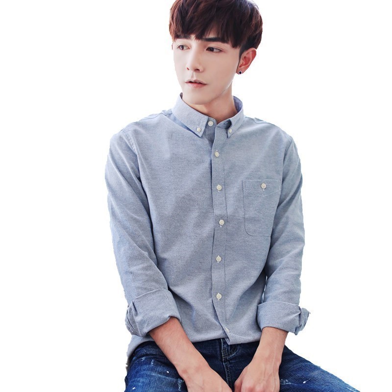 男士长袖衬衫棉韩版修身纯色白春季衬衣潮休闲衣服男装夏薄寸衫男