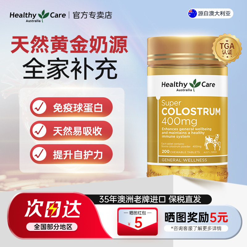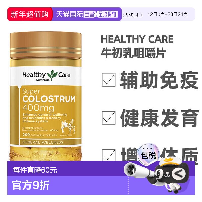 HealthyCare牛初乳咀嚼片200片免疫球蛋白力高钙增强提高澳洲进口