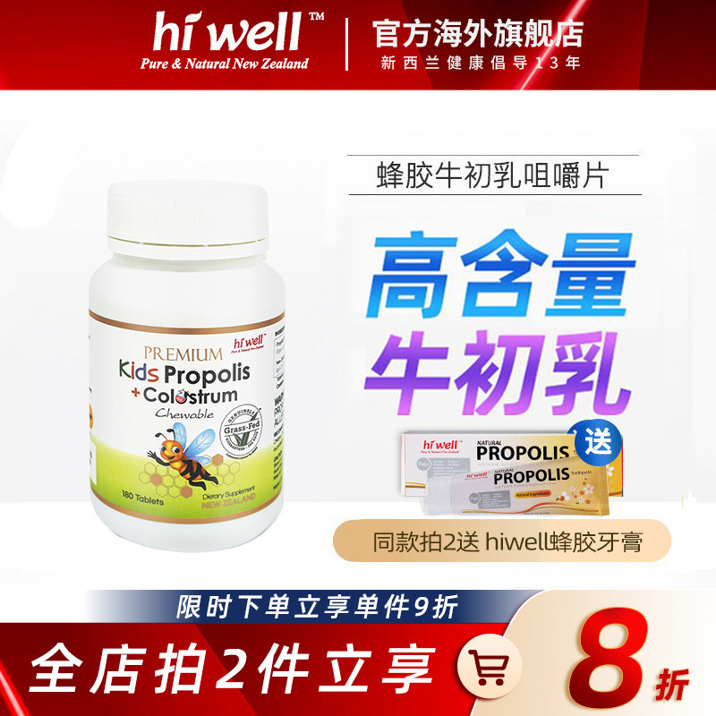 直邮 hiwell新西兰蜂胶牛初乳咀嚼片高含量球蛋白麦卢卡蜂胶进口