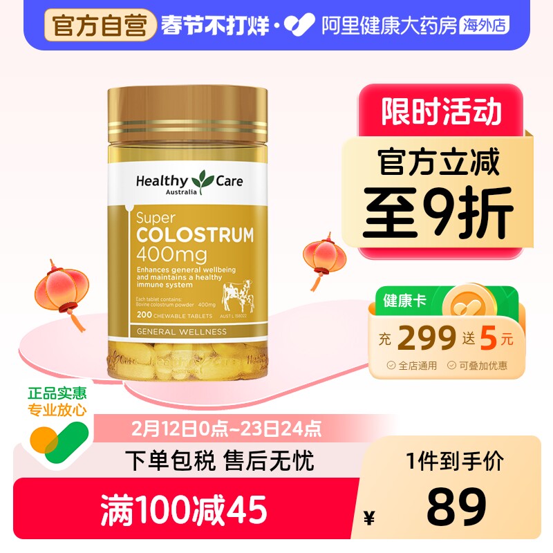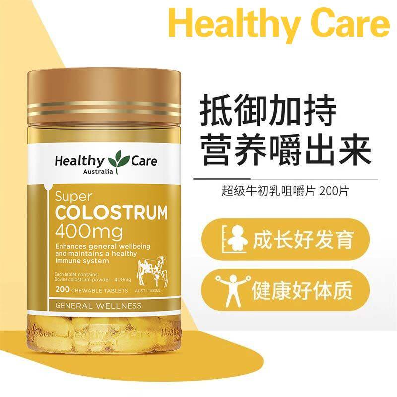 澳大利亚直邮healthy care牛初乳咀嚼片辅助免疫健康发育200片