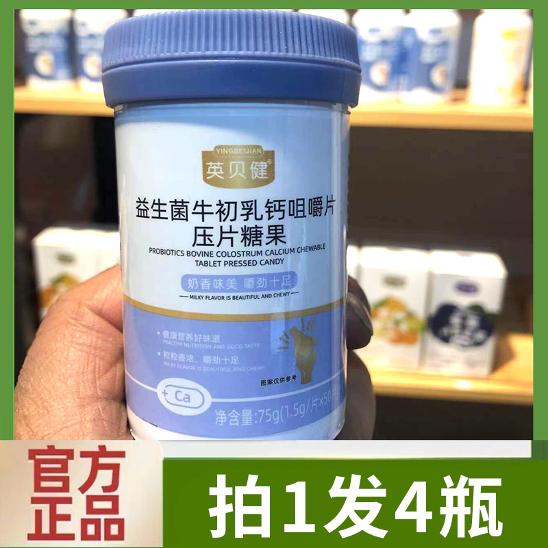 拍1发4 英贝健益生菌牛初乳钙咀嚼片压片糖果钙片青少年儿童官方