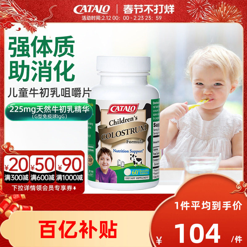 CATALO家得路进口儿童牛初乳免疫球蛋白咀嚼片钙片官方旗舰店60粒