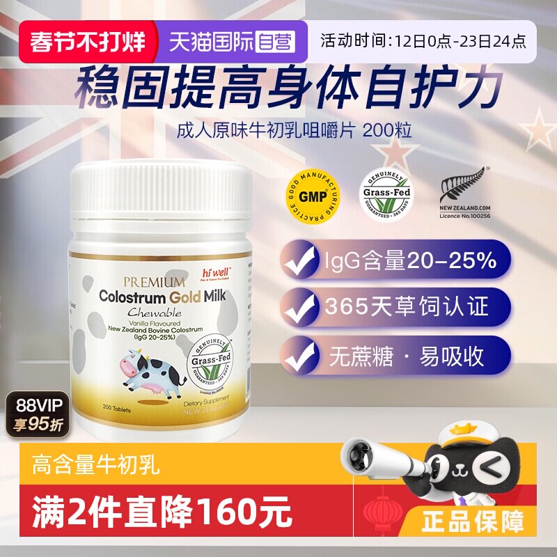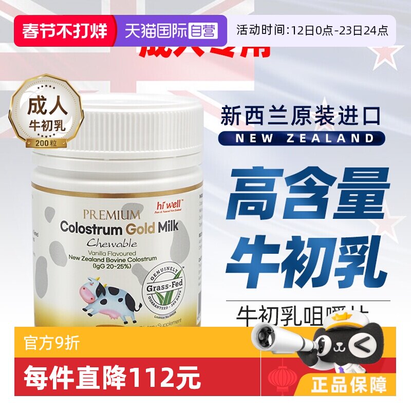 新西兰原装进口HIWELL高级黄金牛初乳咀嚼片成人提高抵抗力200粒