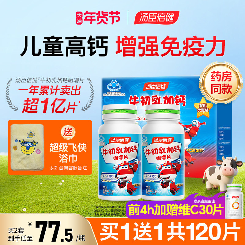 汤臣倍健牛初乳免疫球蛋白加钙片儿童咀嚼片增强免疫力官方旗舰店