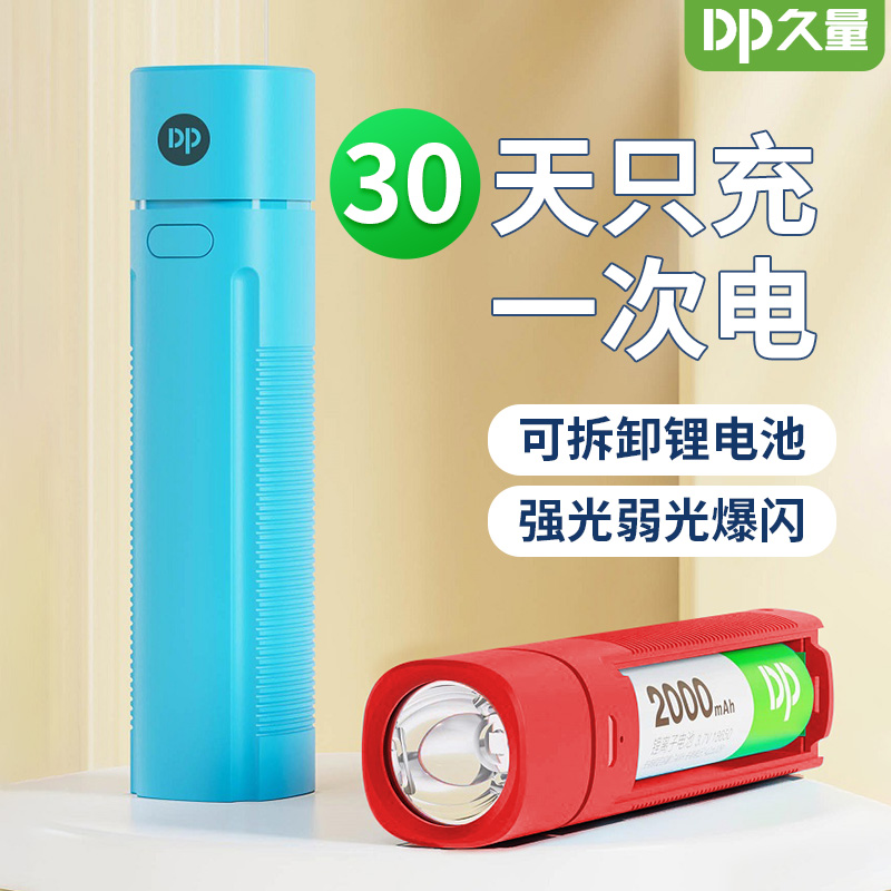 久量可更换锂电池手电筒充电学生住校用长续航照明家用停电应急灯