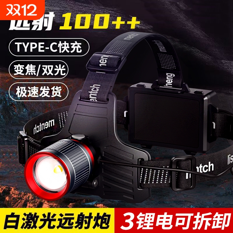 立胜新款头灯户外超长续航充电锂电池手电筒强光超亮夜晚钓鱼专用