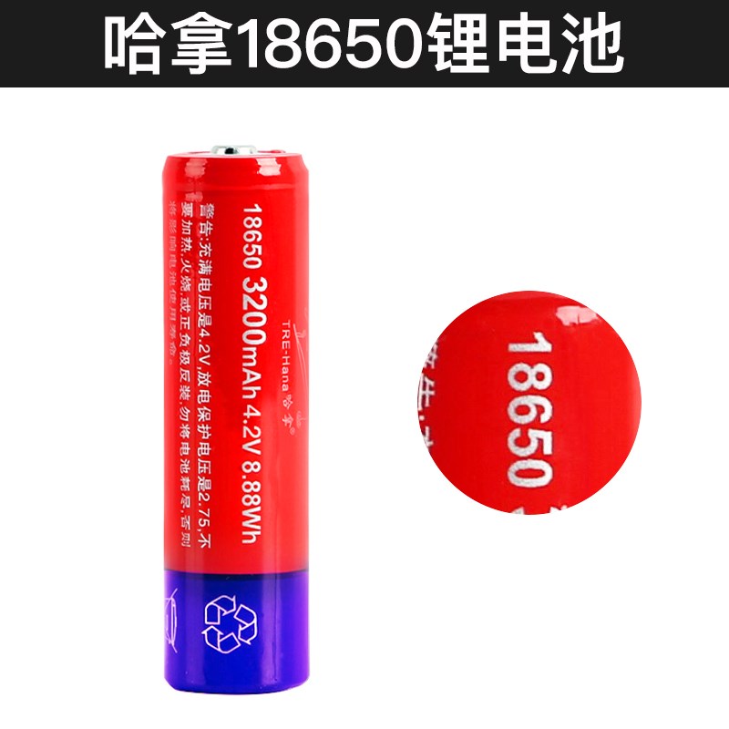 哈拿186502170026650动力锂电池手电筒头灯3.7V/4.2V专用锂电池