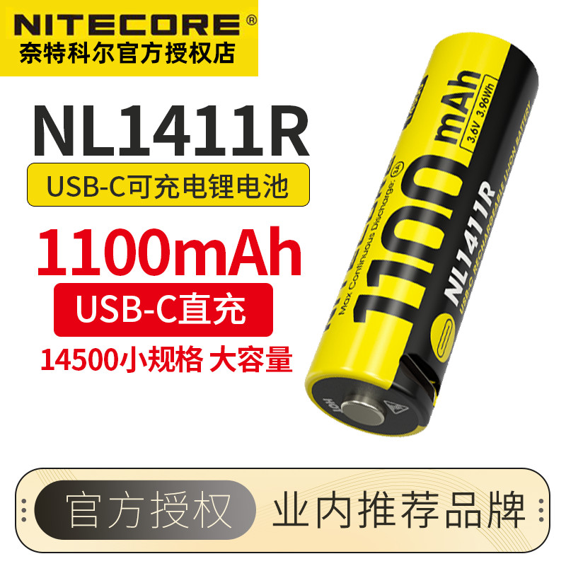奈特科尔NL1411R锂电池手电筒用 USB-C直充大容量1100mAh电池3.6v