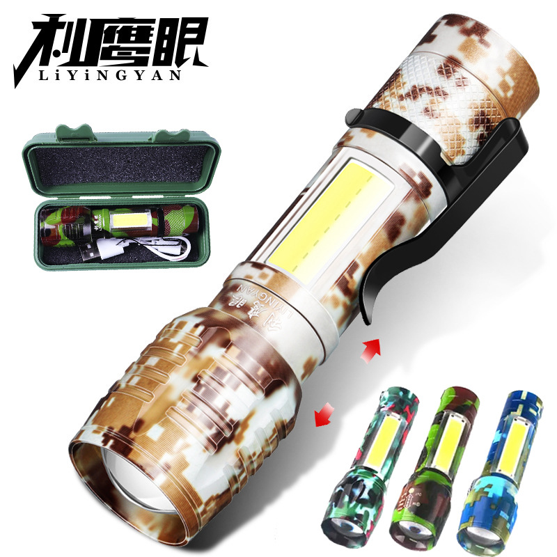 大功率led强光可充电锂电池手电筒带COB侧灯小号便携应急照明电筒