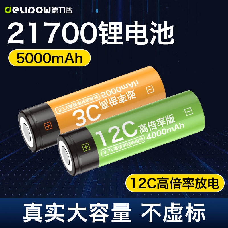 德力普21700锂电池手电筒小电钻通用高倍率10C动力型平头可充3.7v