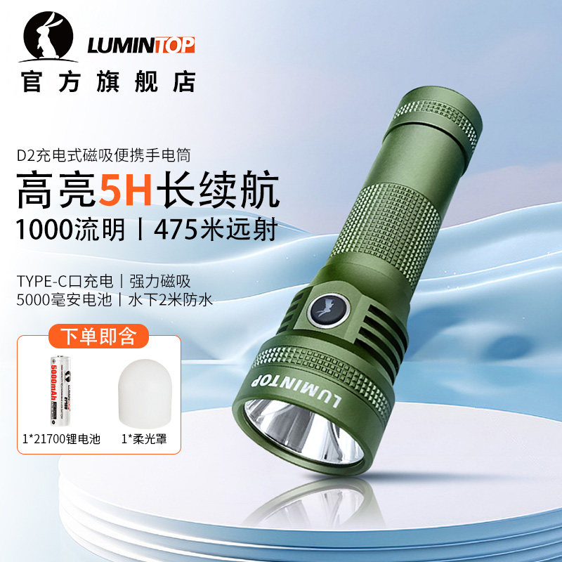 D2强光手电筒强光 磁吸USB充电灯家用长续航锂电池手电筒户外露营