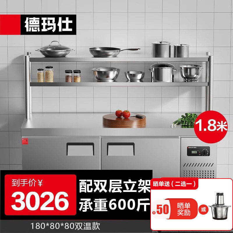 德玛仕商用冷藏冷冻工作台奶茶操作台冰柜水吧台厨房用保鲜工作台