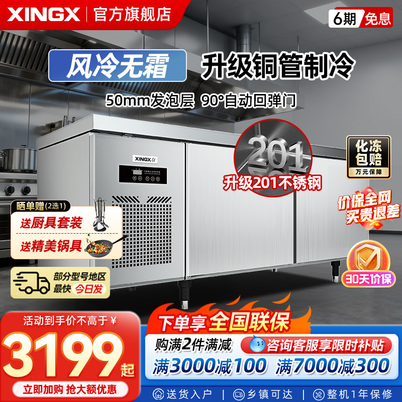 星星工作台冰柜风冷无霜冷藏商用厨房保鲜操作台平冷柜冷冻工作台
