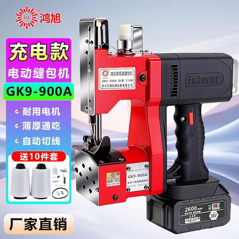 鸿旭GK9-900A充电款电动缝包机大功率无线封包机编织袋封口机打包