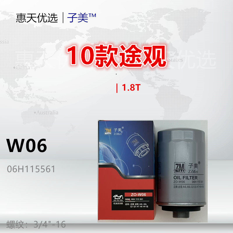 W06适配迈腾/途观/帕萨特CC高尔夫/速腾尚酷甲壳虫 1.8T机油滤芯