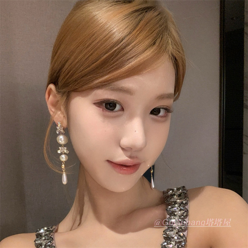 韩系锆石珍珠流苏耳环高级感气质优雅耳钉名媛宴会礼服配饰耳饰女