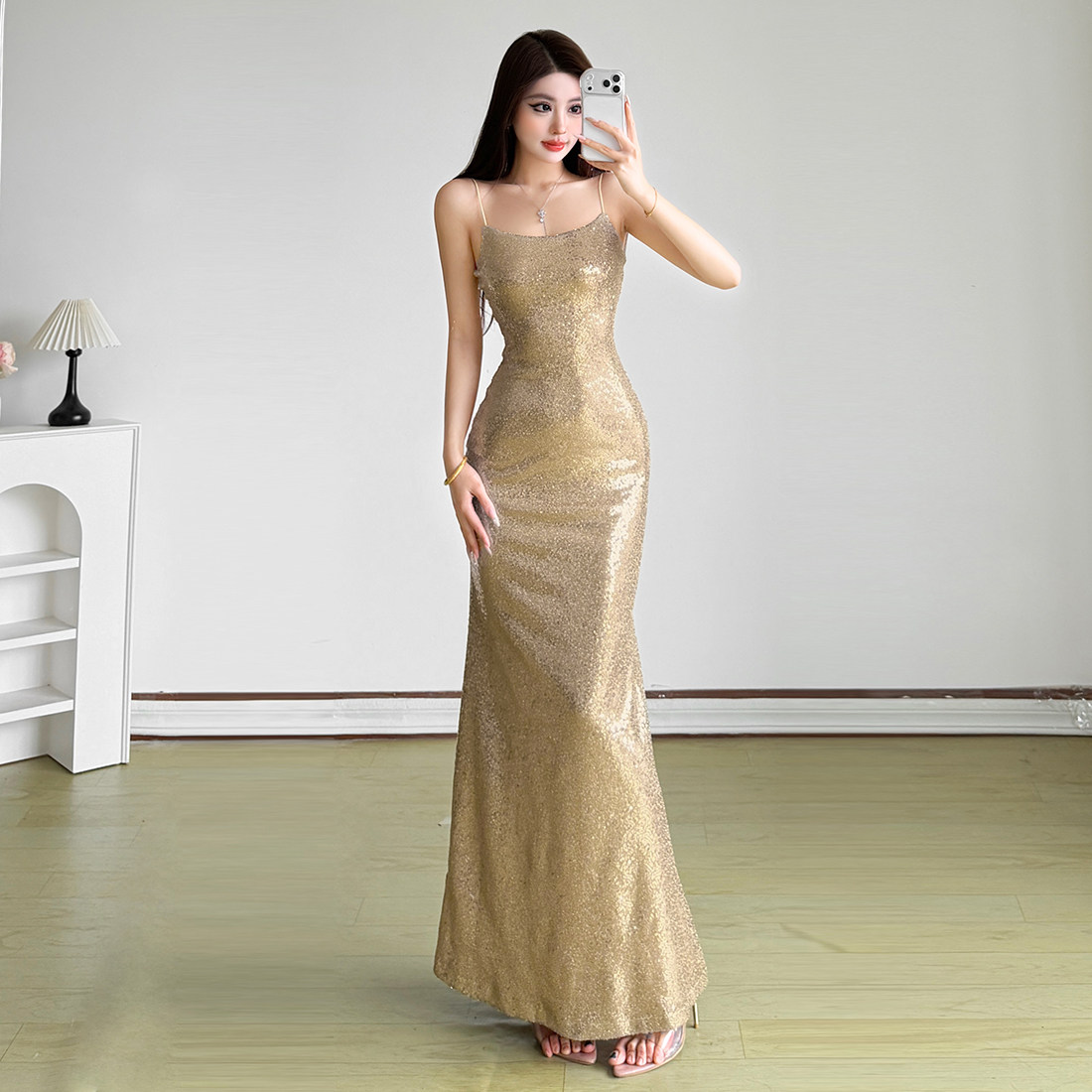 #Sisjuly#老钱Tune名媛宴会礼服 重工亮片设计鱼尾吊带连衣裙女秋