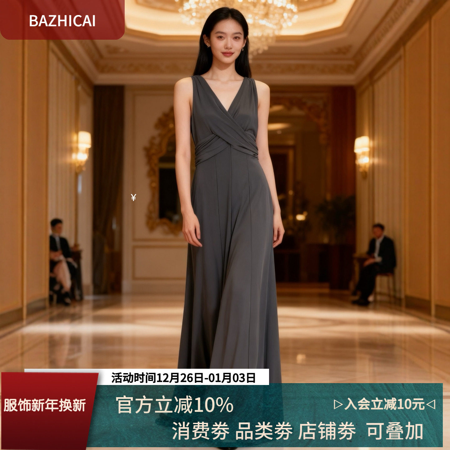 2025夏季新款性感低胸V领吊带连衣裙高级感气质名媛宴会礼服长裙
