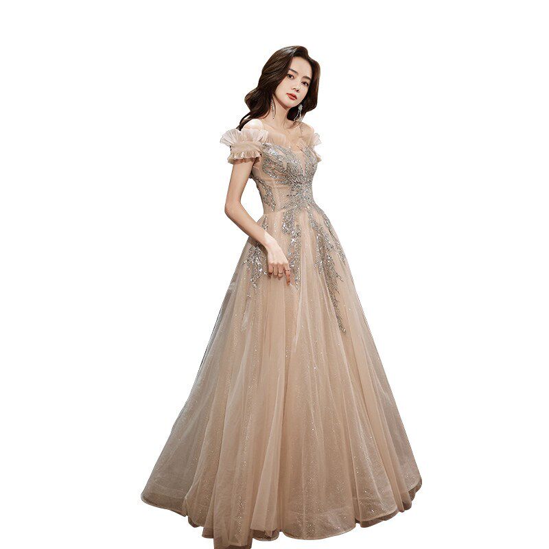 轻婚纱晚礼服2026新款轻奢小众吊带主持人成人礼森系名媛宴会礼服