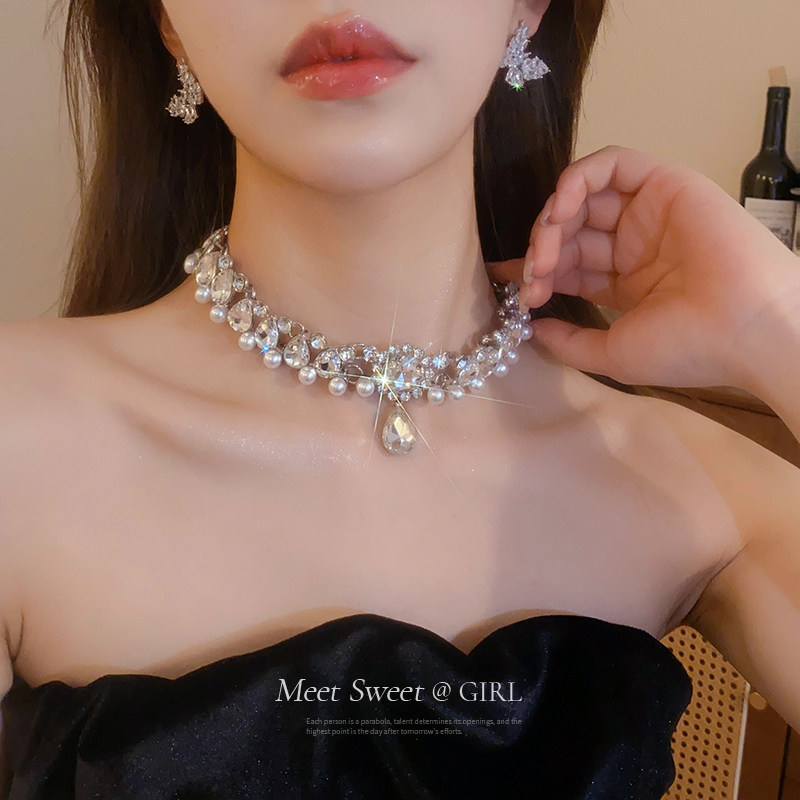 矜贵千金感水滴锆石项链耳环套装法式轻奢高级感名媛宴会礼服配饰