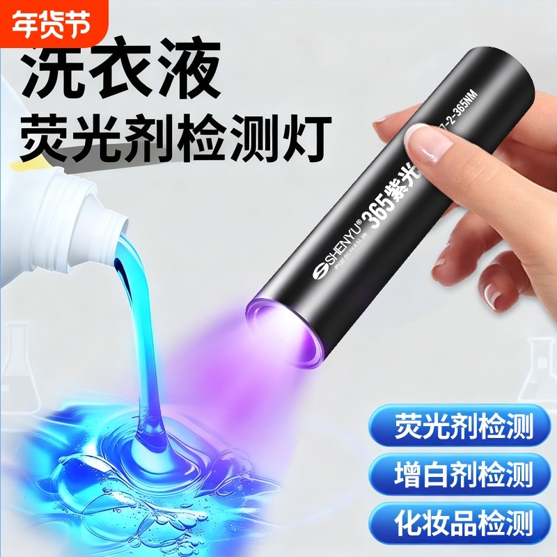 洗衣液荧光剂检测笔紫外线鉴定专用面膜化妆品365nm紫光灯手电筒