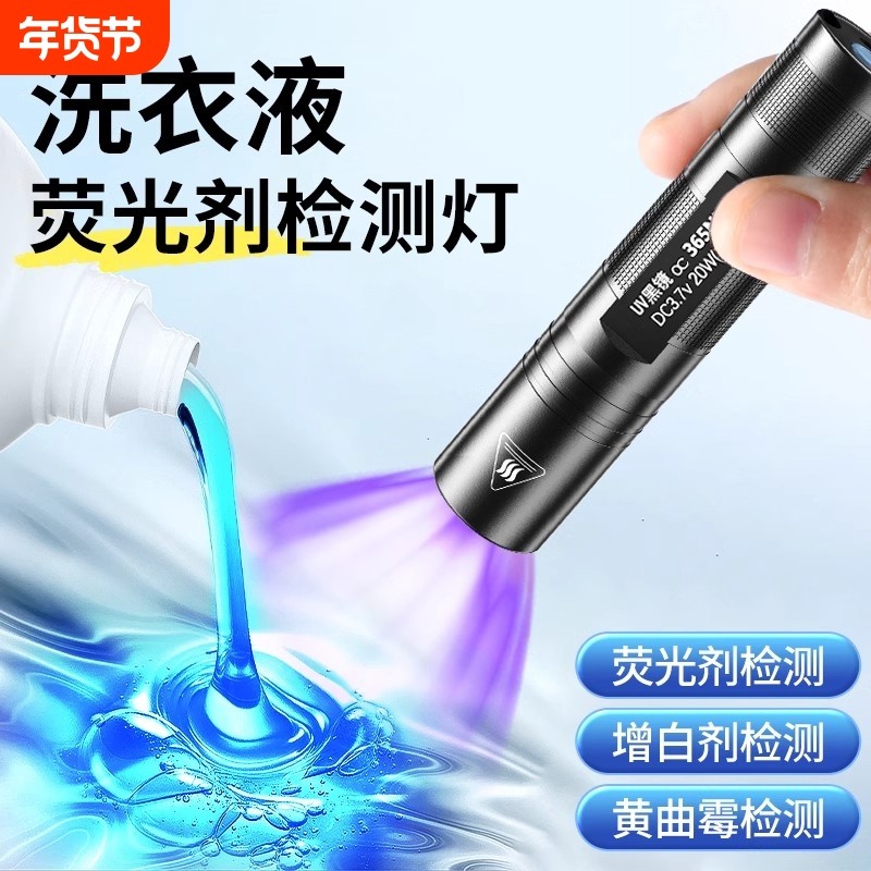 洗衣液荧光剂检测灯紫外线鉴定专用面膜化妆品365nm紫光灯手电筒