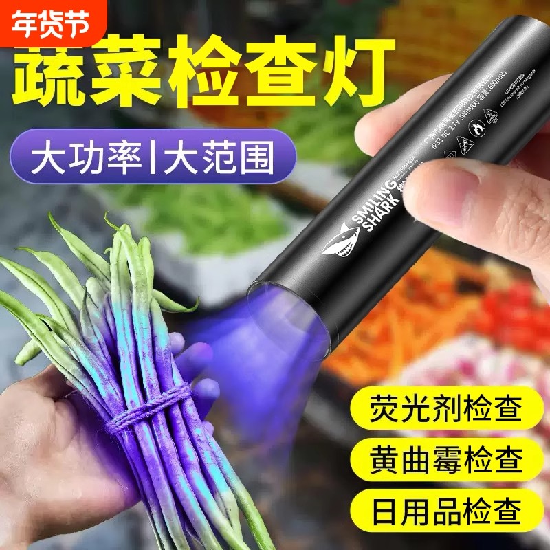 紫光灯蔬菜灯鉴定专用蔬菜检测笔农残365nm手电筒荧光剂紫外线