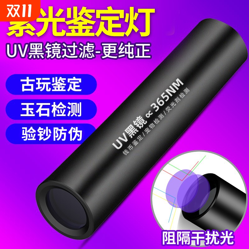 紫光灯鉴定365nm荧光剂检测照玉石烟酒手电筒强光紫外线验钞灯