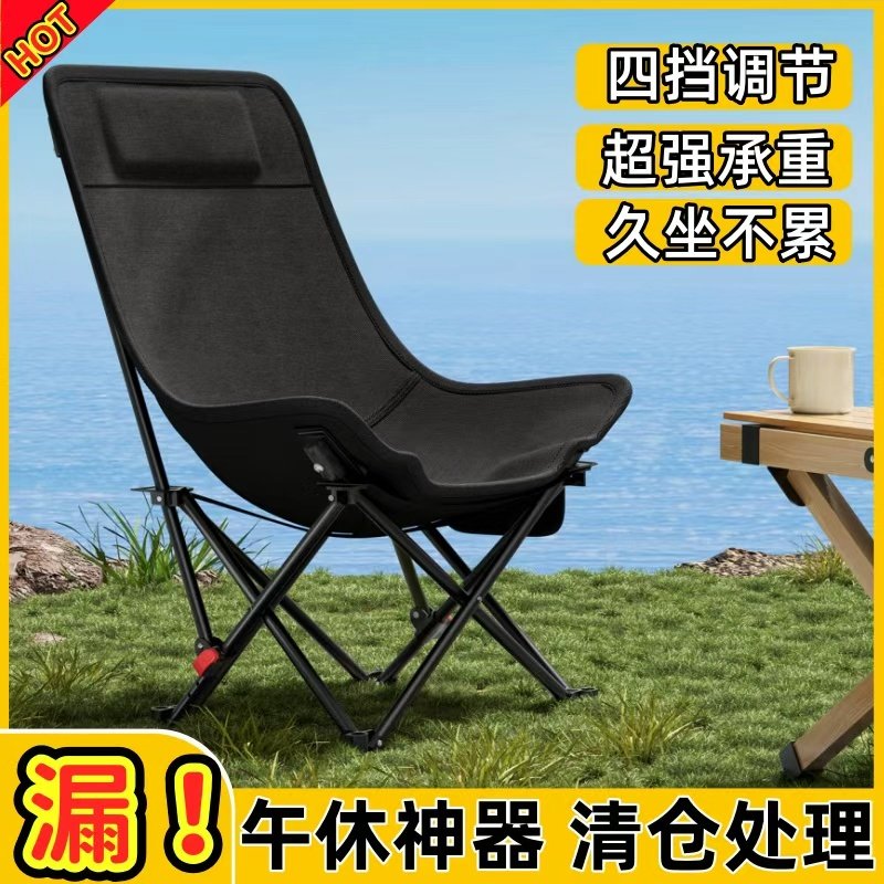 户外折叠椅加高靠背可折叠月亮椅便携午休办公室露营等沙发懒人椅