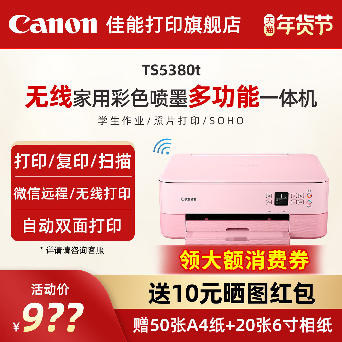 佳能旗舰店TS5380t彩色A4喷墨多功能打印复印扫描一体机学生家用小型无线WiFi微信远程自动双面