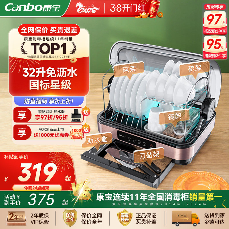 康宝母婴消毒柜家用新款小型碗柜台式迷你茶杯烘干一体机碗筷收纳