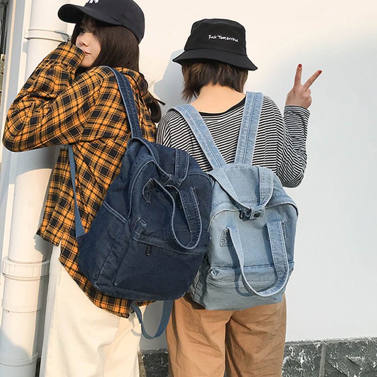 书包女韩版原宿ulzzang高中学生潮背包学院风简约牛仔帆布双肩包