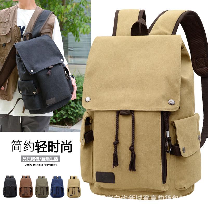 双肩包女复古帆布包韩版时尚2025新款高中学生书包女学院风男背包