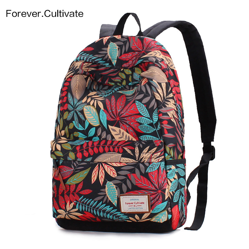 新款韩版学院风碎花小清新印花帆布双肩包女学生复古背包百搭书包