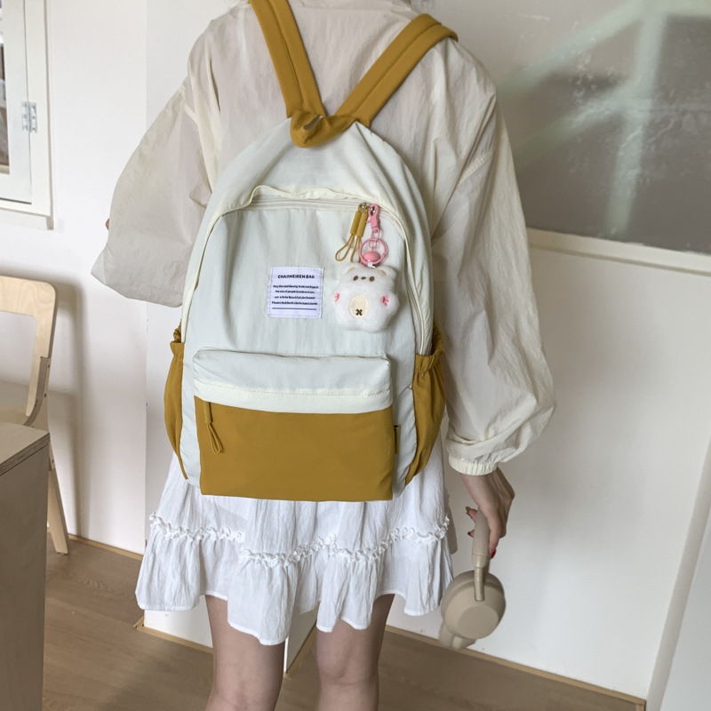 耐脏帆布书包女初中拼接撞色小清新学院风韩版简约高颜值双肩背包